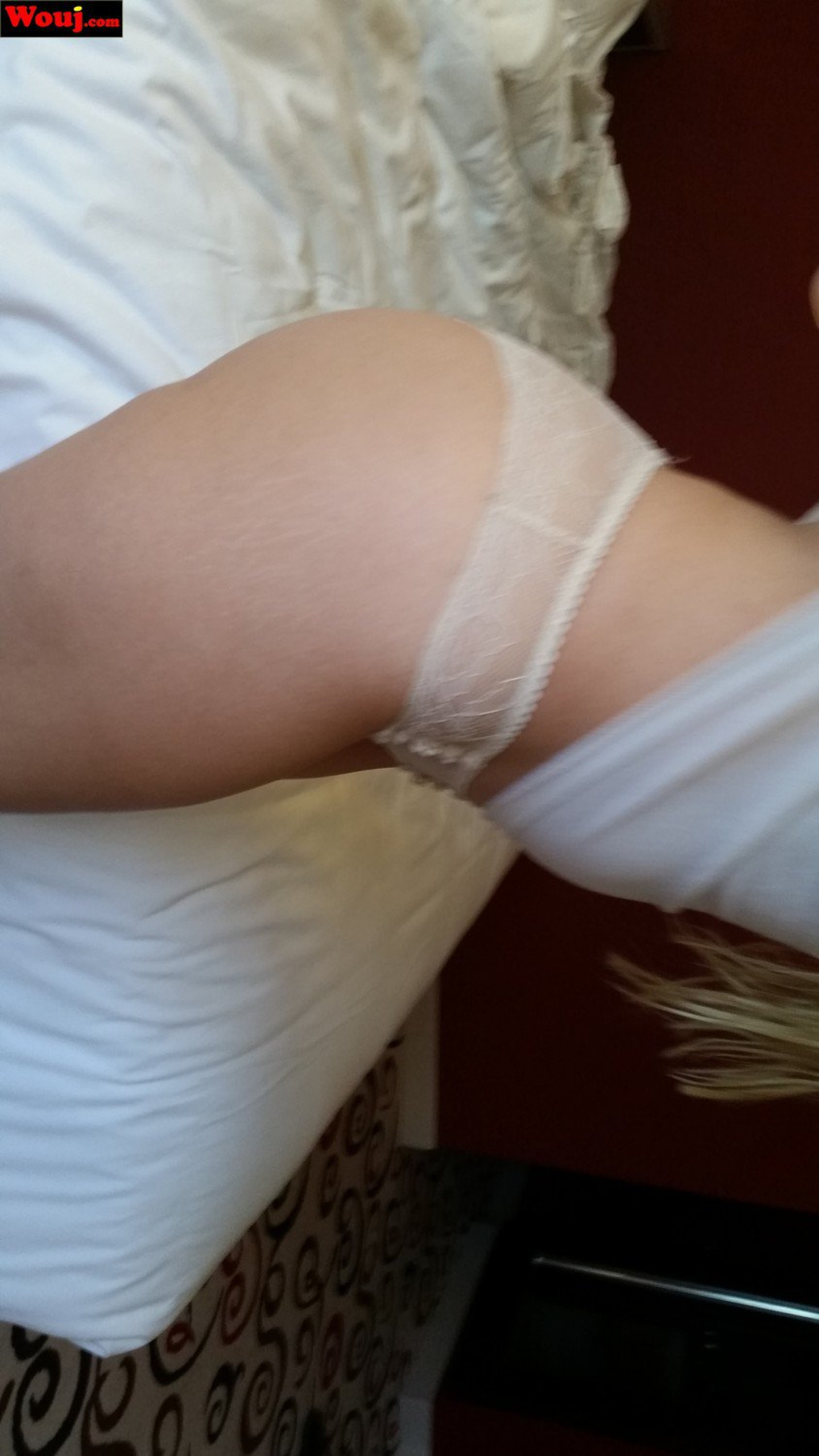 Sexy blonde chick showing her nice ass while posing in panties