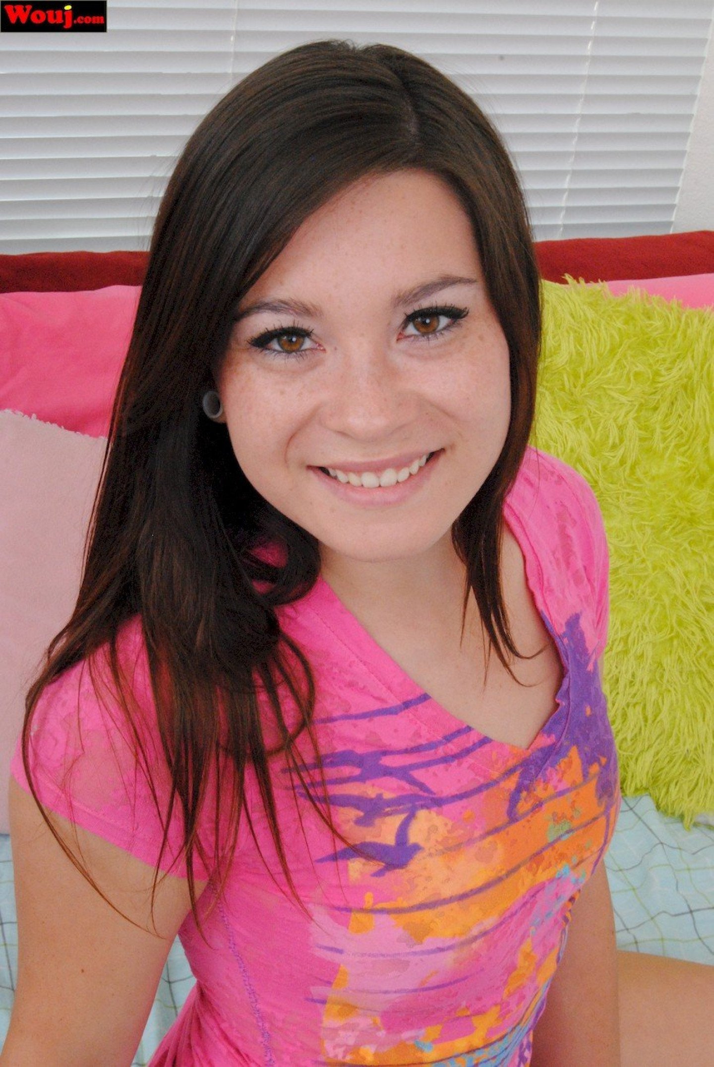 Amazing brunette chick posing in black panties and a shirt