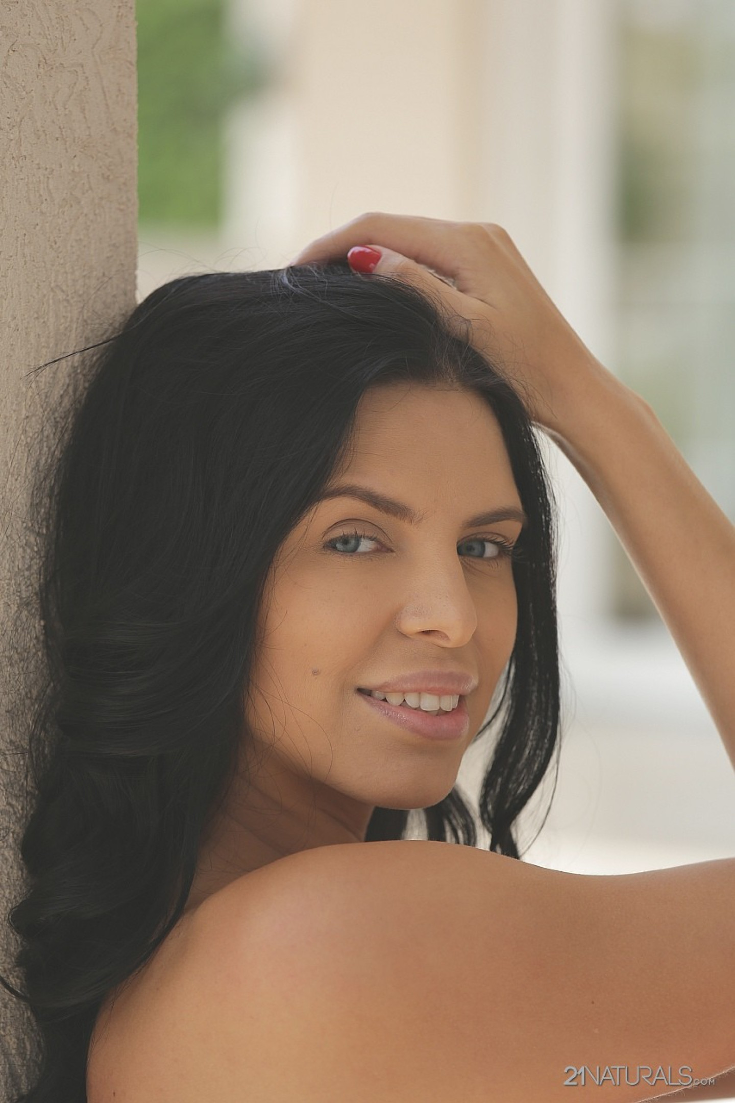 Teen Kira Queen takes off her lingerie, shows her big tits and rubs her pussy