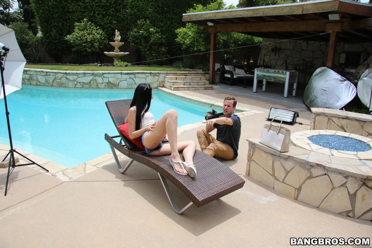 Brunette Marley Brinx lifts her legs up and gets her butthole stuffed poolside