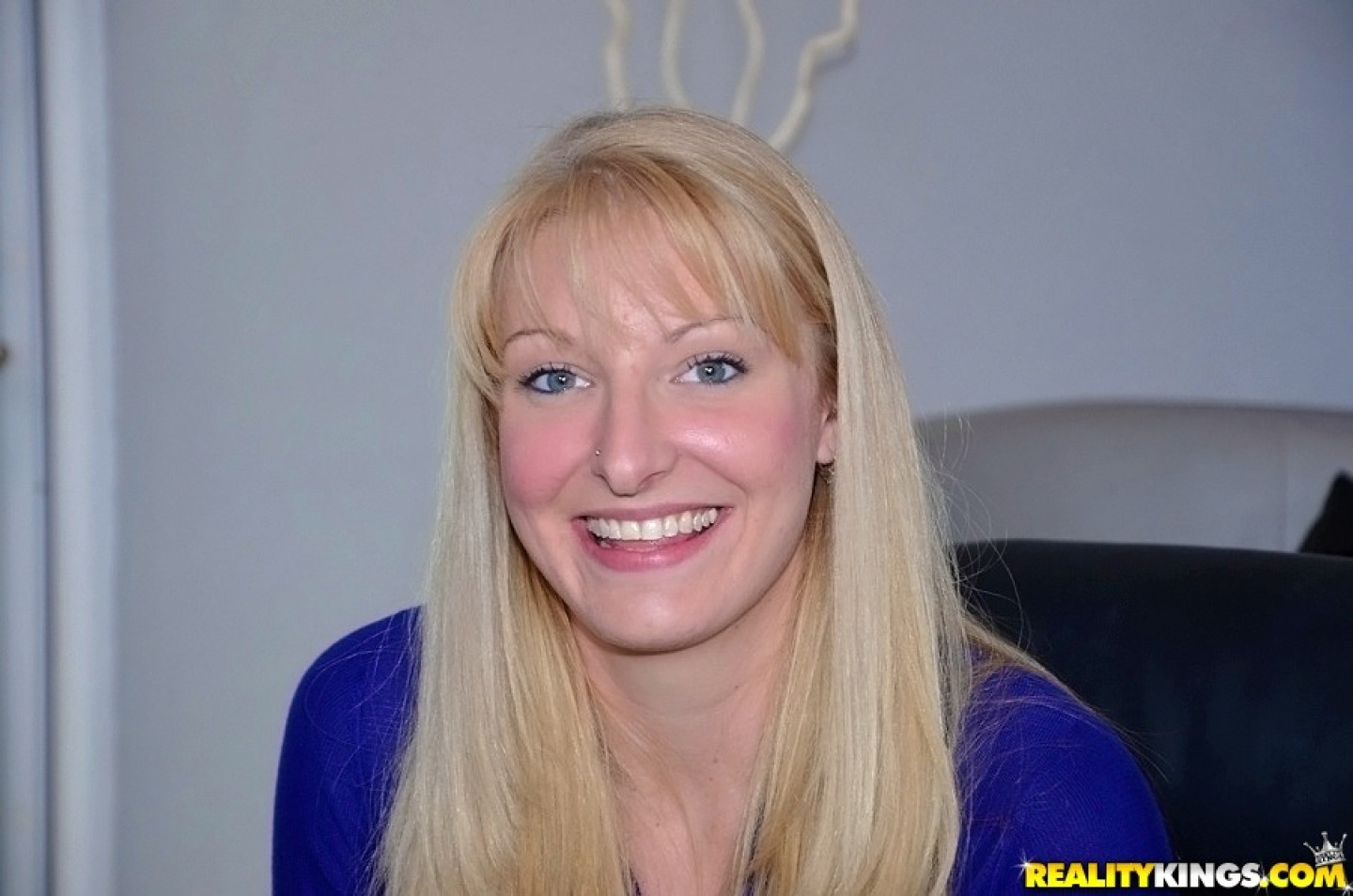Amateur blonde in blue lingerie Bridget Rite sensual pussy solo on cam