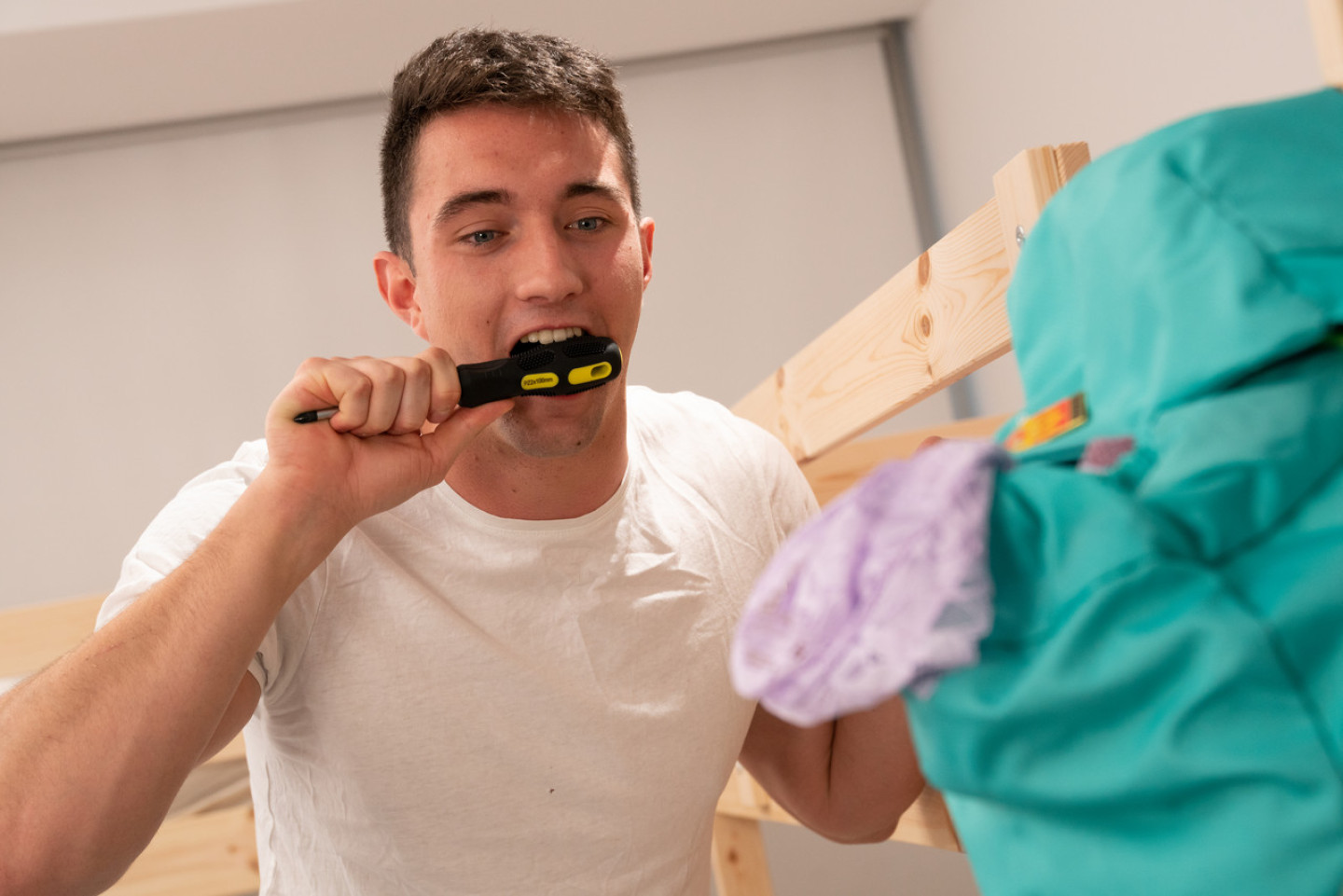 Inked European teen backpacker Eden Ivy gets fucked on the hostel floor