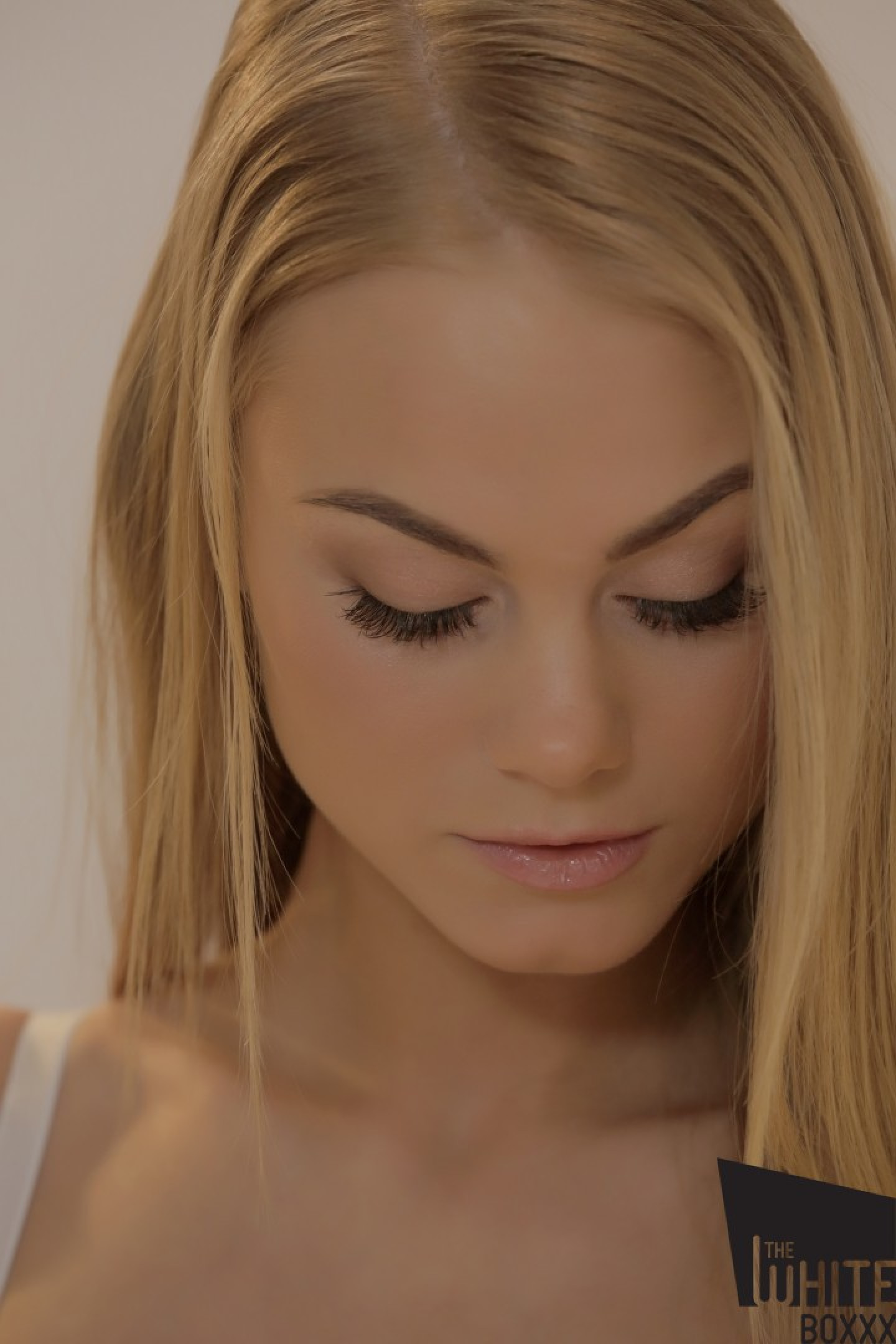 Erotic thin Nancy A strips white lingerie to pose topless showing natural tits